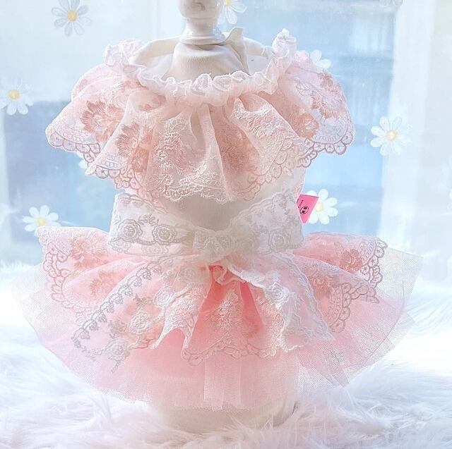 襟元の大きなフリフリのレースにフリルのチュールスカート、
