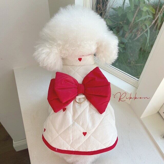 【予約】赤いリボンのキルティングコート