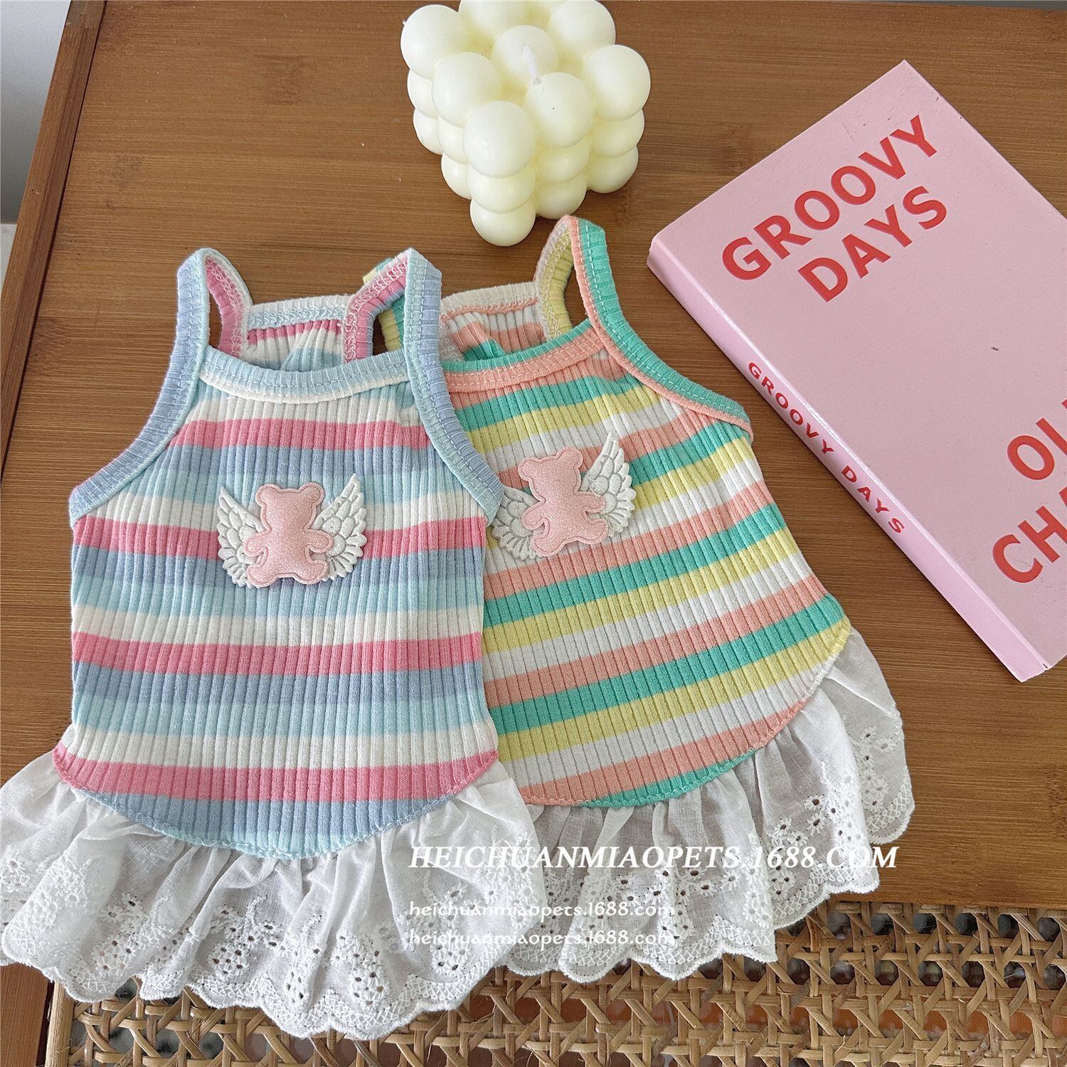 【予約】くまさんのカラフルボーダーキャミワンピ