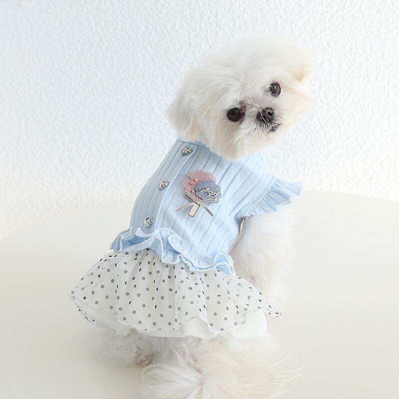 ドット柄のスカートがキュートでかわいいワンピースです♡