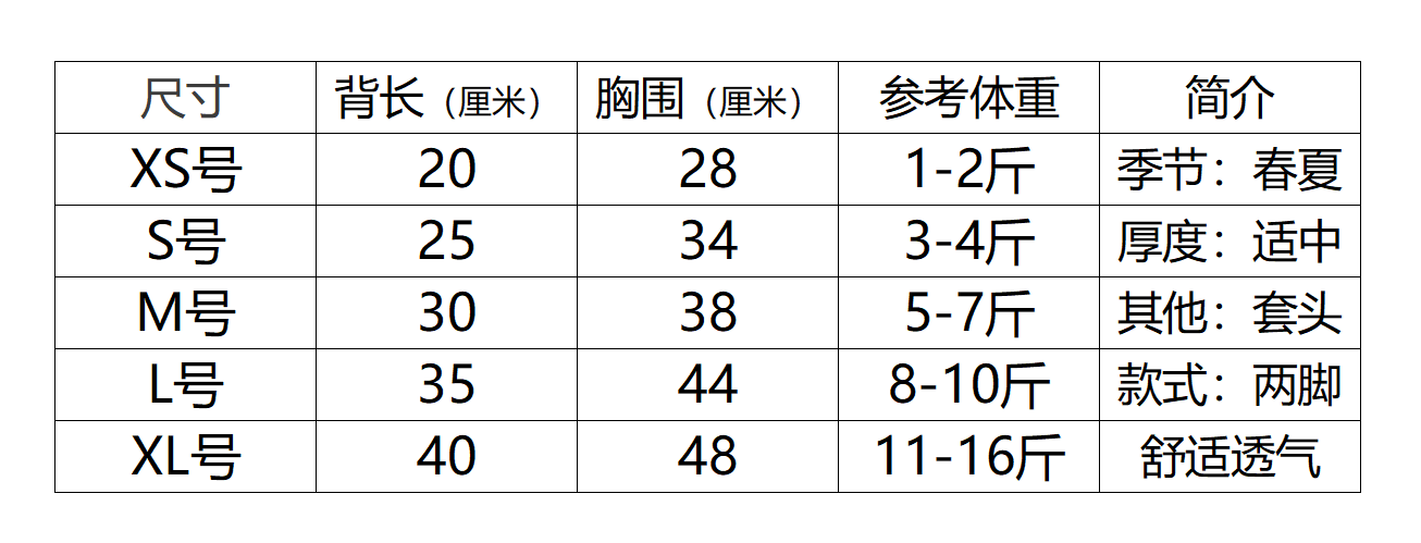XS/S/M/L/XL