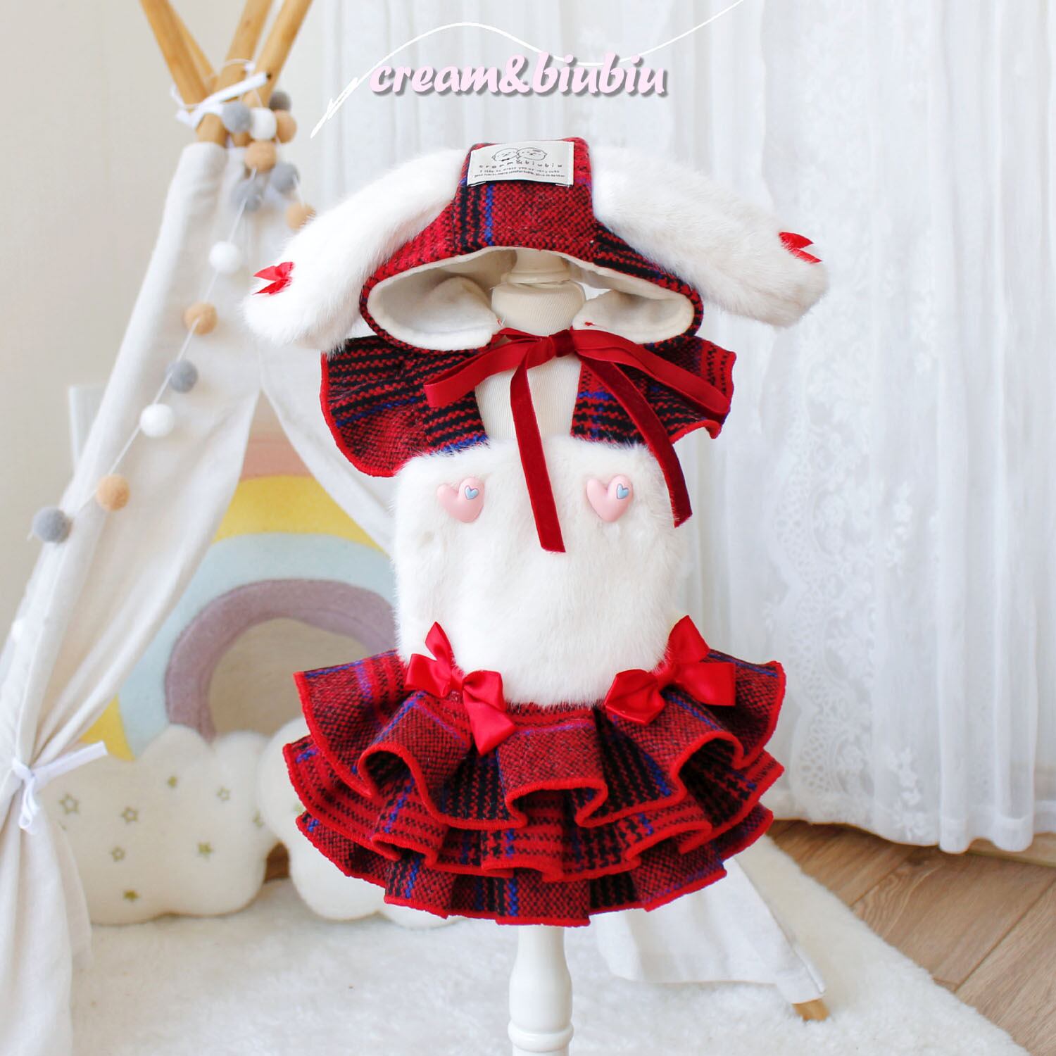 可愛いうさ耳付きチェックワンピースです♡